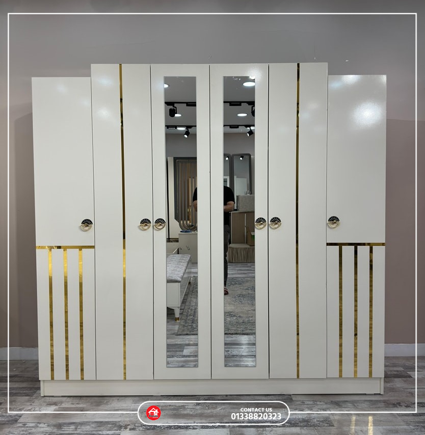 Size: Bed-6/7 feet (king size) + Bedside Table-1.5 feet + Storage Divan-6/1.5 feet + 6 Part Almira-9/6 feet + Dressing Table-4/6 feet+ Sitting Tool(regular)