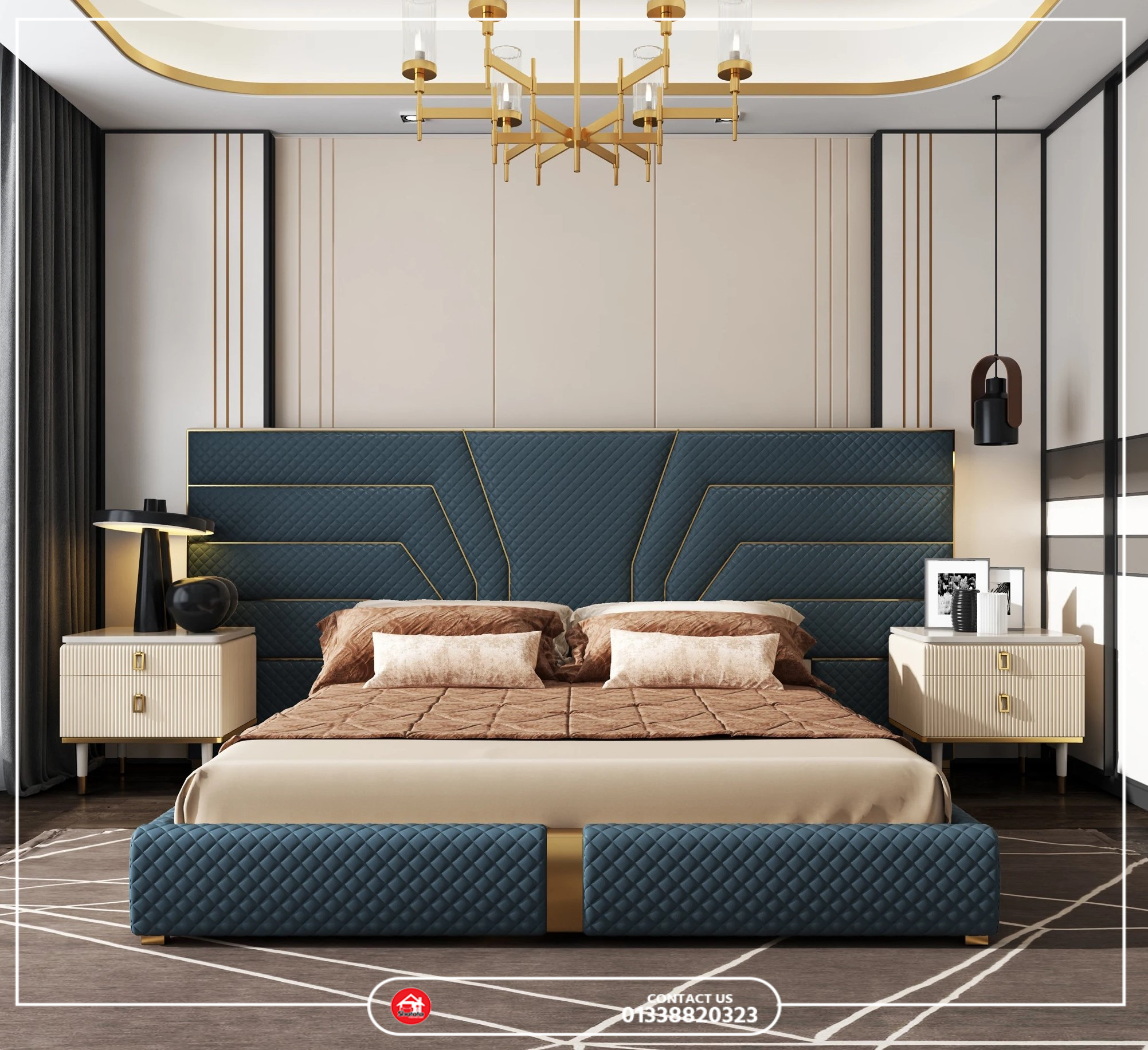 - Luxury Bed with 2 Bedside Table