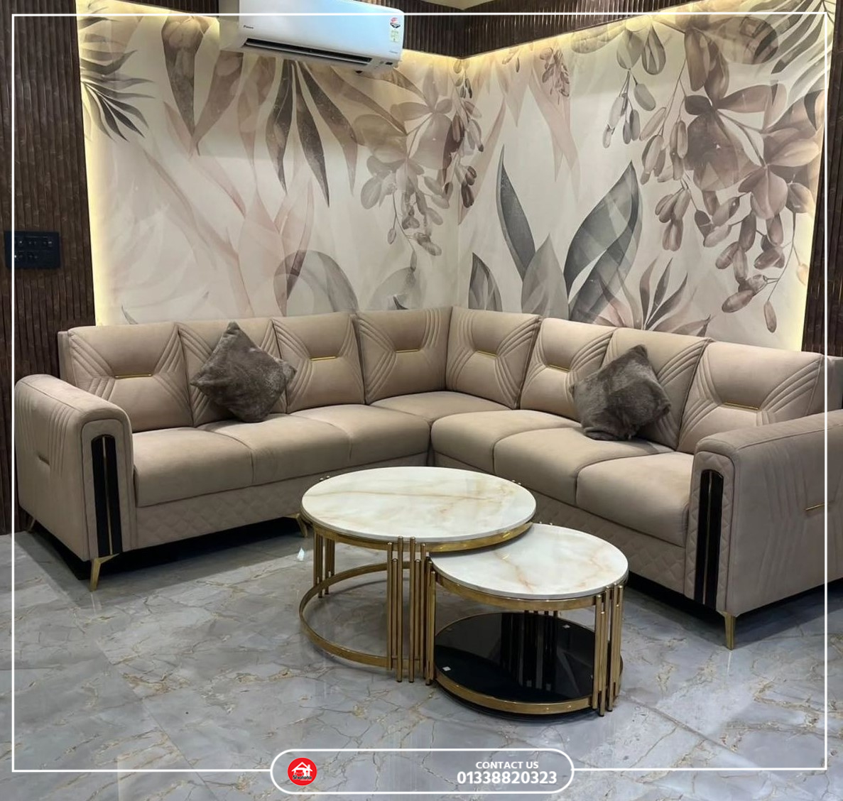 Size: Sofa 8.5 feet / 8.5 feet + Center Table 30 inch / 24 inch Round