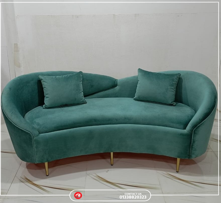 Materials: Maheguni Wood in Structure + Solid 4 inch Rubber Foam + Turkis/Sweet Velvet Febrics + Stainless Steel Leg.
